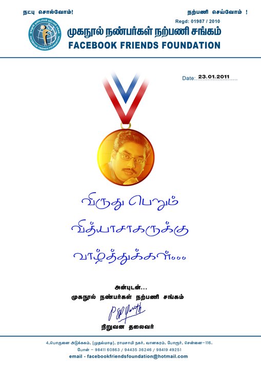 முகநூல் நண்பர்கள் நற்பணி சங்கத்தின் வாழ்த்து மடல்!