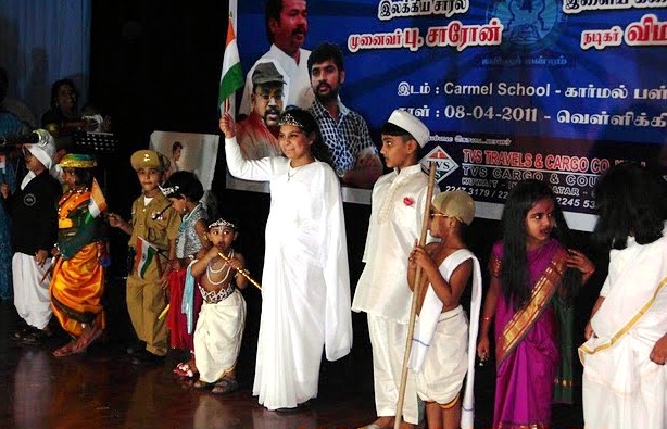 சற்றேறக் குறைய பத்துக் குழந்தைகள்; காந்தியாக, நேருவாக, சுபாஷ் சந்திர போஸாக, இந்திராவாக, ஜான்சிராணி லட்சுமிபாயாக, கிருஷ்ணனாக, கண்ணகியாக, கண்ணனாக, பாரதியாராக, பாரத் மாதாவாக என்று வந்து கண்முன்னே ஜாதிமதமெனும் பாகுபாடற்ற ஒரு பாரம்பரிய ஒற்றுமையினை நிலைநிறுத்திச் சென்றார்கள். மனிதருக்கும் கடவுளுக்குமிடையே, மனிதருக்கு முழுமையாகப் புரியாமலுள்ள ஒரு சமன்பாடு அந்த மேடையில் புரியவந்தது.